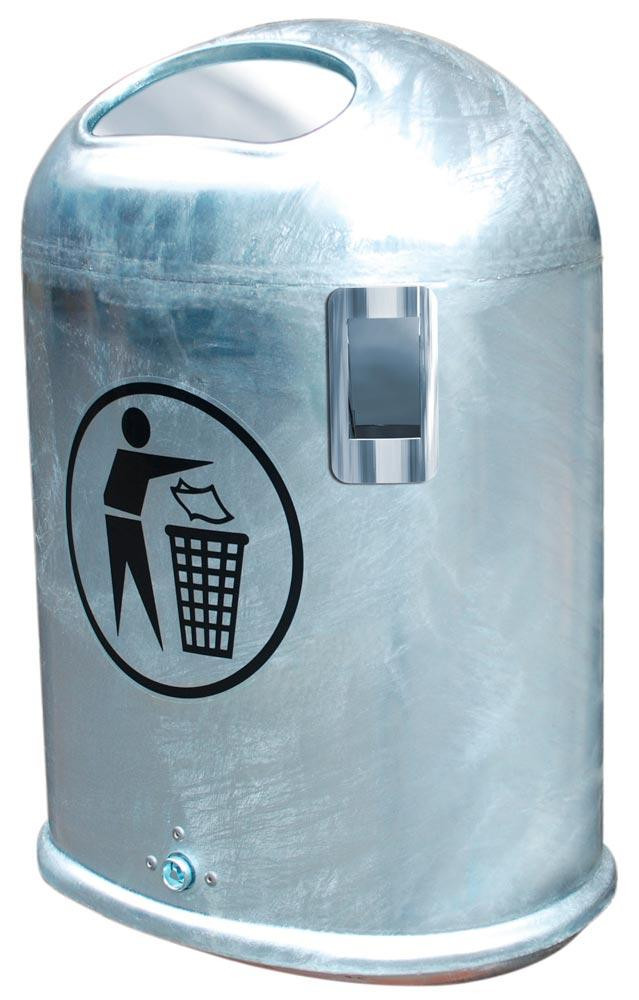 Abfallbehälter oval mit Ascher, Vol. 45 l, aus Stahlblech, BxTxH 425x330x590 mm, mit Federklappe, feuerverzinkt