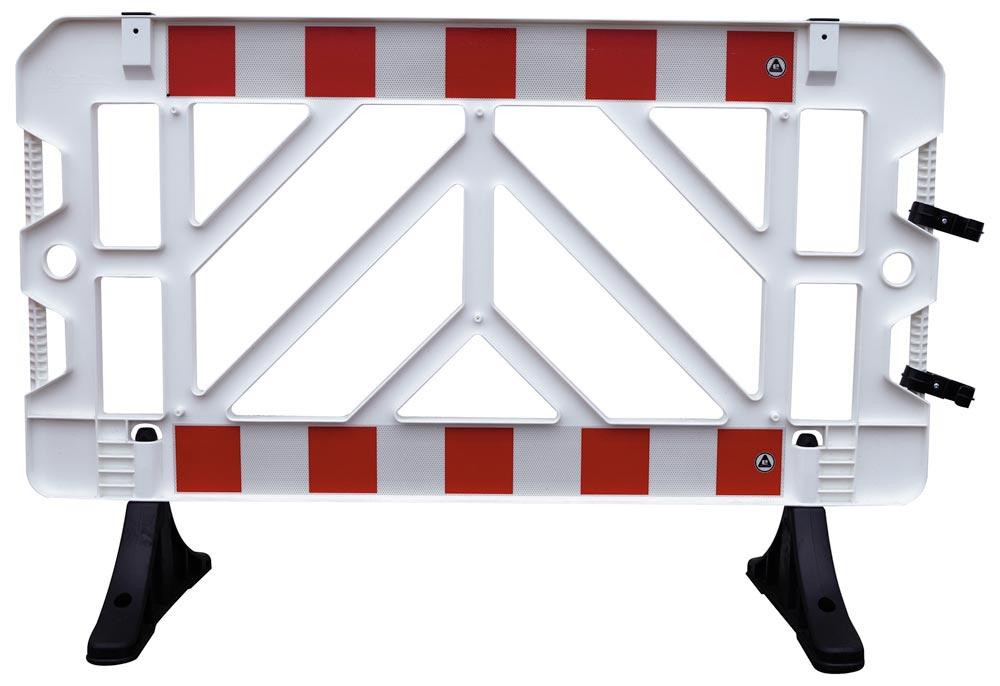 ∙ Aus Kunststoff Polypropylen (PP) ∙ B x H 1500 x 1000 mm ∙ 2 reflektierende Streifen, 1000 x 120 mm ∙ Gewicht 12,6 kg ∙ Füße aus PVC mit Bohrungen zum Aufdübeln ∙ Aufnahme von Schildern möglich ∙ Geeignet für Veranstaltungen zur Trennung bzw. Leitung von Teilnehmern und Besuchern ∙ Als Absperrung von Fuß- und Radwegen und als Baufeldeingrenzung sowie Sichtschutz einsetzbar ∙ Einfache und stabile Verbindung zwischen den Zäunen möglich