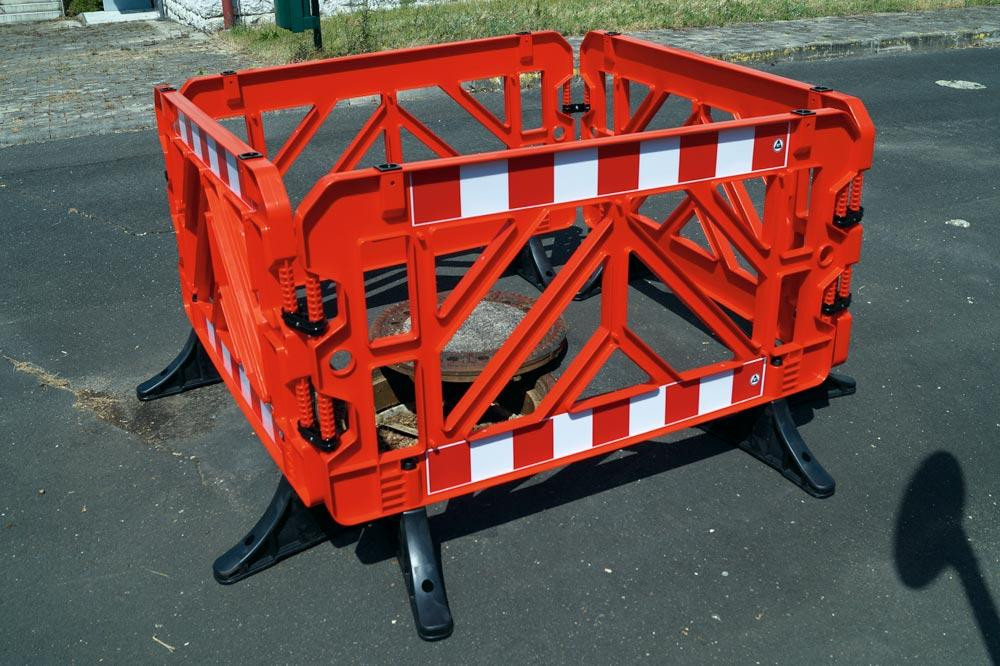 ∙ Aus Kunststoff Polypropylen (PP) ∙ B x H 1500 x 1000 mm ∙ 2 reflektierende Streifen, 1000 x 120 mm ∙ Gewicht 12,6 kg ∙ Füße aus PVC mit Bohrungen zum Aufdübeln ∙ Aufnahme von Schildern möglich ∙ Geeignet für Veranstaltungen zur Trennung bzw. Leitung von Teilnehmern und Besuchern ∙ Als Absperrung von Fuß- und Radwegen und als Baufeldeingrenzung sowie Sichtschutz einsetzbar ∙ Einfache und stabile Verbindung zwischen den Zäunen möglich