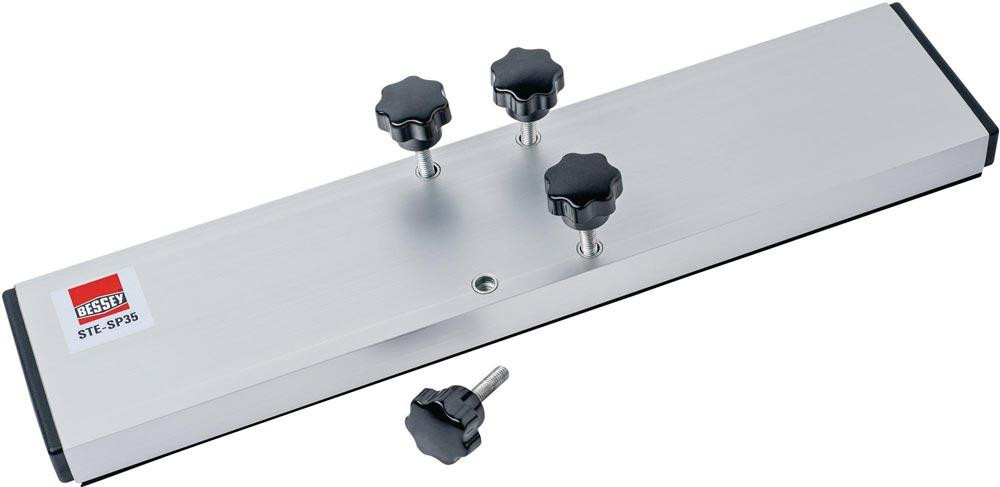 leichtes Aluminiumprofil mit rutschhemmendem Zellkautschuk · zur Vergrößerung der Abstützfläche von BESSEY Decken- und Montagestützen ST (nur in Verbindung mit Ersatzkontaktfläche (8000785259)) und STE sichere Fixierung an den Kontaktflächen dank Sterngriffschrauben · SB-verpackt