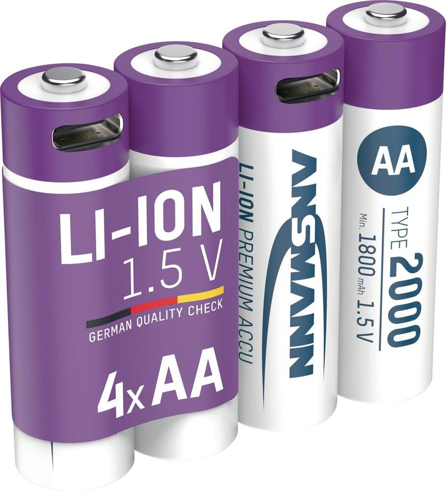 4x Mignon AA Li-Iom Akku 2000 mAh, 4 in 1 USB-C Ladekabel