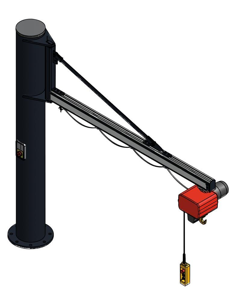 Alu-Säulenschwenkkran, ohne Elektrokettenzug, Traglast 125 kg, Schwenkbereich 270 Grad, Ausladung 1895 mm, Bauhöhe 3287 mm, inkl. Verbund-Anker