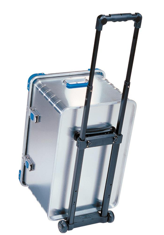 Anbautrolley für Alu-Allzweckboxen, 2 Rollen 56 mm, ausziehbarer/arretierbarer Griff, Traglast bis 30 kg