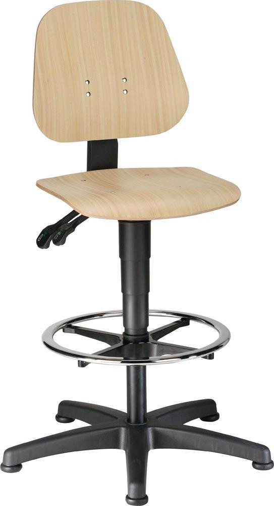 Arbeitsdrehstuhl, Sitz Höhe 580-850 mm, Sitz- u. Rücken aus Buche, mit Gleitern u. Fußring