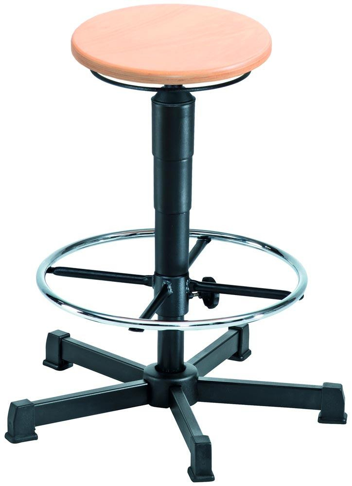 Arbeitshocker mit Gasfederhöhenverstellung, Fußring, Sitzfläche aus Buche-Schichtholz, Sitz Höhe 530-780 mm