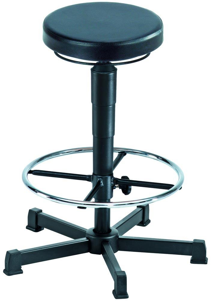 Arbeitshocker mit Gasfederhöhenverstellung, Fußring, Sitzfläche aus PU-Schaum, schwarz, Sitz Höhe 570-790 mm