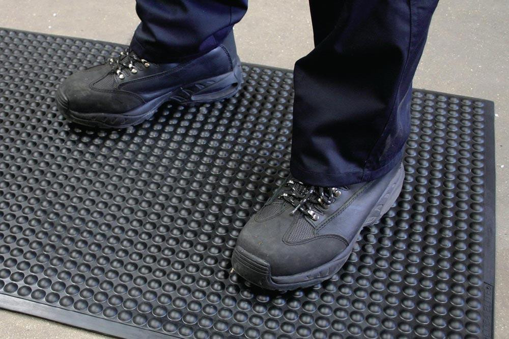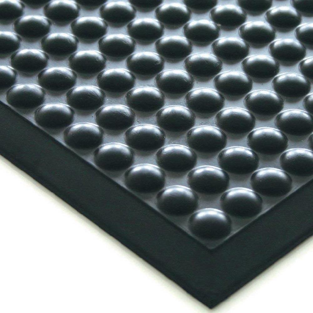aus hochwertigem Polyurethan mit genoppter Oberfläche · Brandschutz geprüft nach BS EN 13501-1 · Temperaturbeständigkeit von -40 °C bis +80 °C · Mattenstärke 15 mm · allseitig abgeschrägte Kanten · Farbe schwarz · Sondermaße auf Anfrage erhältlich