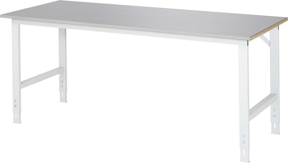 · Höhe: 760 - 1080 mm einstellbar · Flächenlast max. 500 kg · Stabiler Funktionsunterbau mit Gestellfüßen aus Profilstahlrohr (60 x 30 x 2 mm) inkl. Tiefenverstrebungen (oben und unten) und integrierter Höhenverstellung · Aussteifungstraversen (hinten) ∙ Umweltfreundliche Pulverbeschichtung: Gestell in RAL 7035 lichtgrau