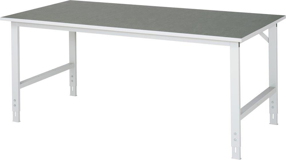 Arbeitstisch, Grundtisch, stufenlos manuell höhenverstellbar, Platte Linoleum, BxTxH 2000x1000x760-1080 mm, RAL 7035
