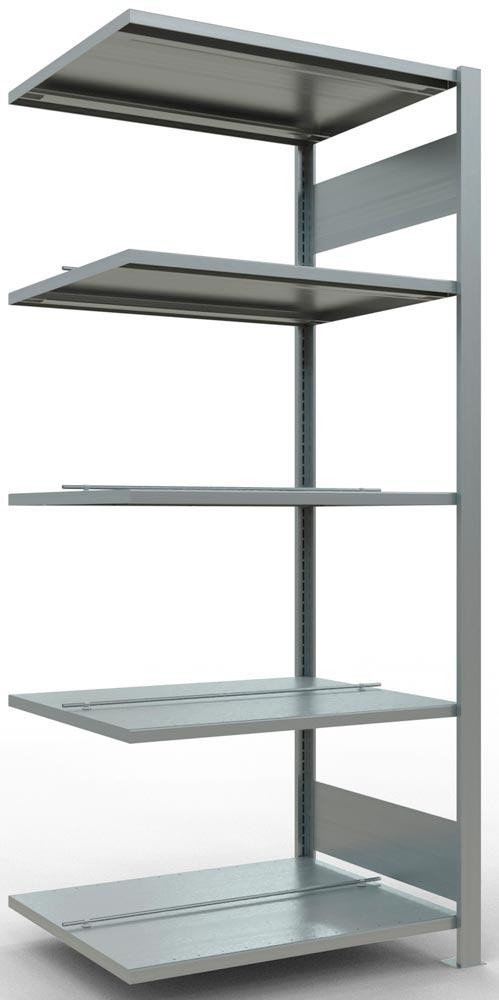 Archiv-Steckregal, Anbaufeld, RAL 7035 lichtgrau, 5 Fachböden, mit Mittelanschlag, Fachlast 150 kg, BxTxH 100x600x1800 mm