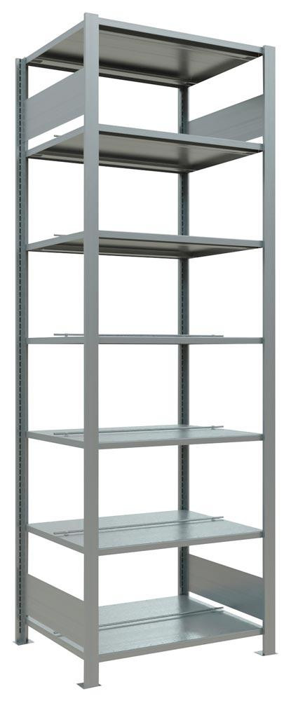 Archiv-Steckregal, Grundfeld, RAL 7035 lichtgrau, 7 Fachböden, mit Mittelanschlag, Fachlast 150 kg, BxTxH 750x600x2300 mm
