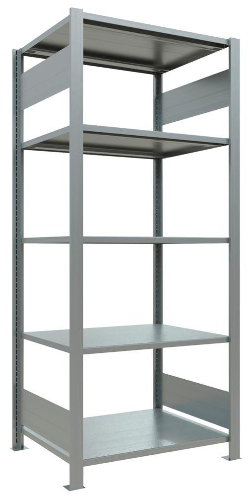 Archiv-Steckregal, Grundfeld, verzinkt, 5 Fachböden, ohne Mittelanschlag, Fachlast 150 kg, BxTxH 750x600x1800 mm
