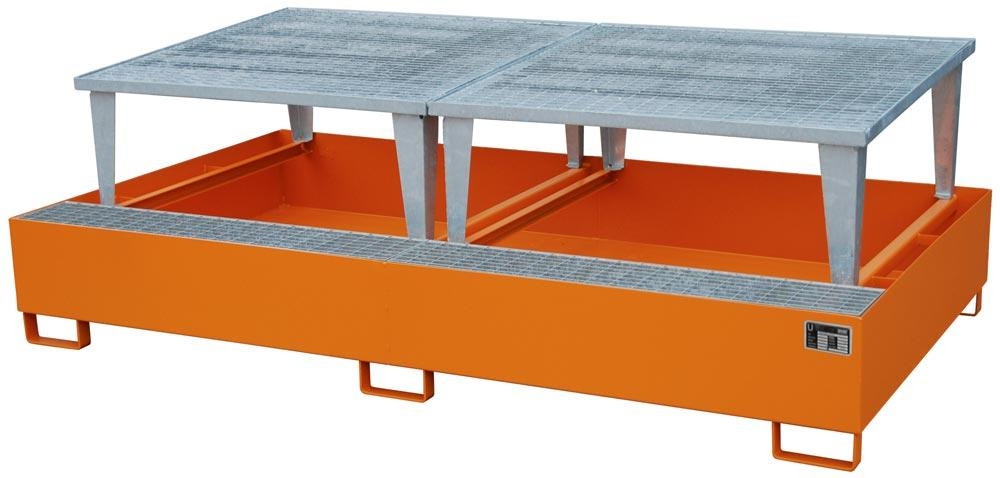 Auffangwanne, Stahl, Auffangvolumen 1000 l, BxTxH 2650x1460x863 mm, mit Abfüllaufsatz, RAL 2000