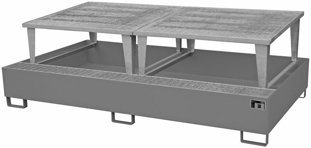 Auffangwanne, Stahl, Auffangvolumen 1000 l, BxTxH 2650x1460x863 mm, mit Abfüllaufsatz, RAL 7005