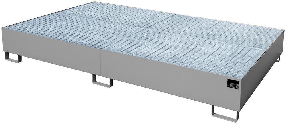 Auffangwanne, Stahl, Auffangvolumen 1000 l, BxTxH 2690x1650x375 mm, ohne Abfüllaufsatz, RAL 7005
