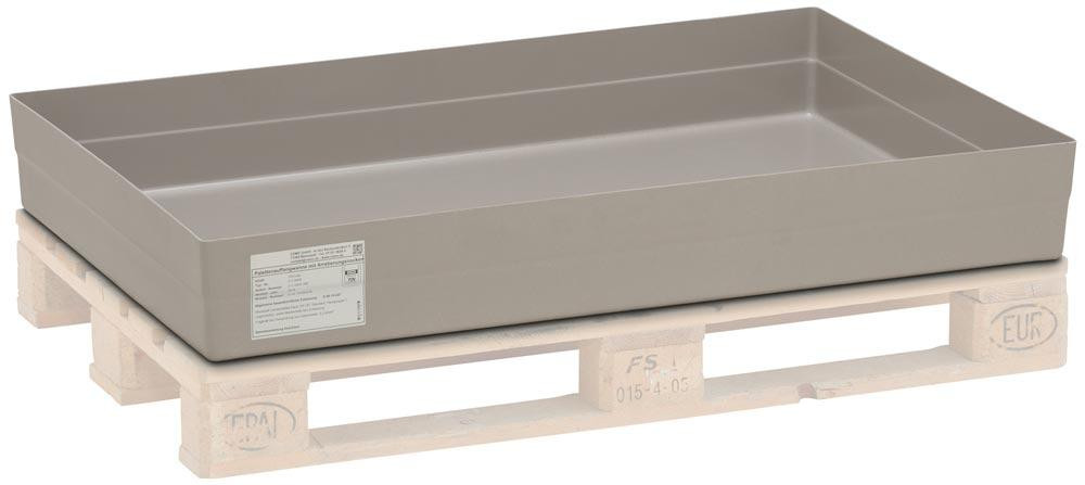 Auffangwanne aus GFK, für Europaletten, ohne Gitterost, mit Arretierungsnocken, Auffangvolumen 150 l, BxTxH 800x1200x208 mm