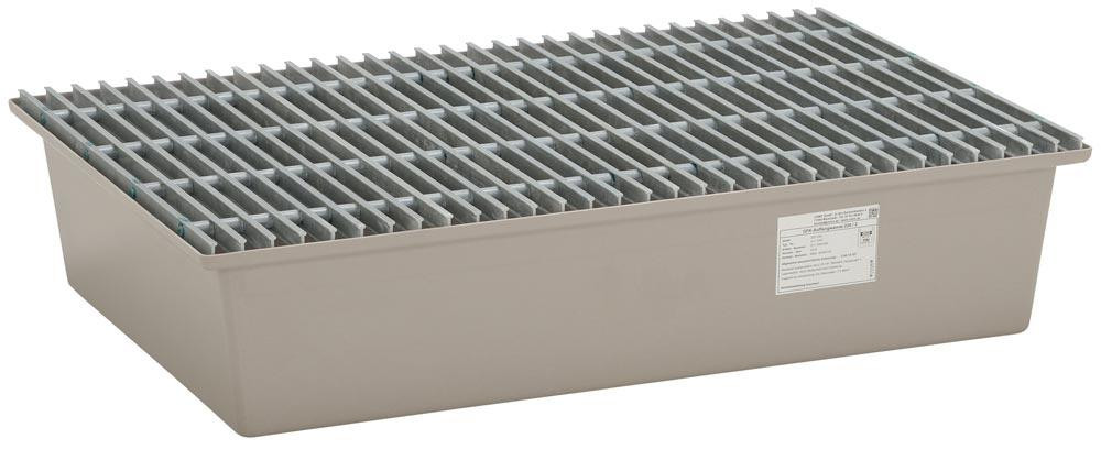 Auffangwanne aus GFK, mit GFK-Gitterrost, Auffangvolumen 220 l, BxTxH 850x1280x290 mm