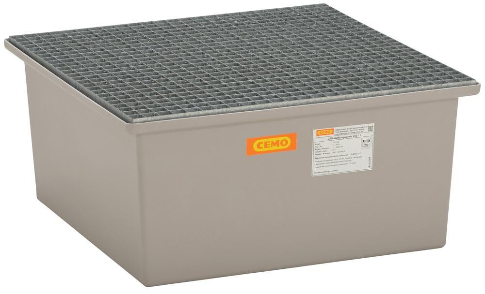 Auffangwanne aus GFK, mit verzinktem Gitterrost, Auffangvolumen 210 l, BxTxH 850x850x400 mm
