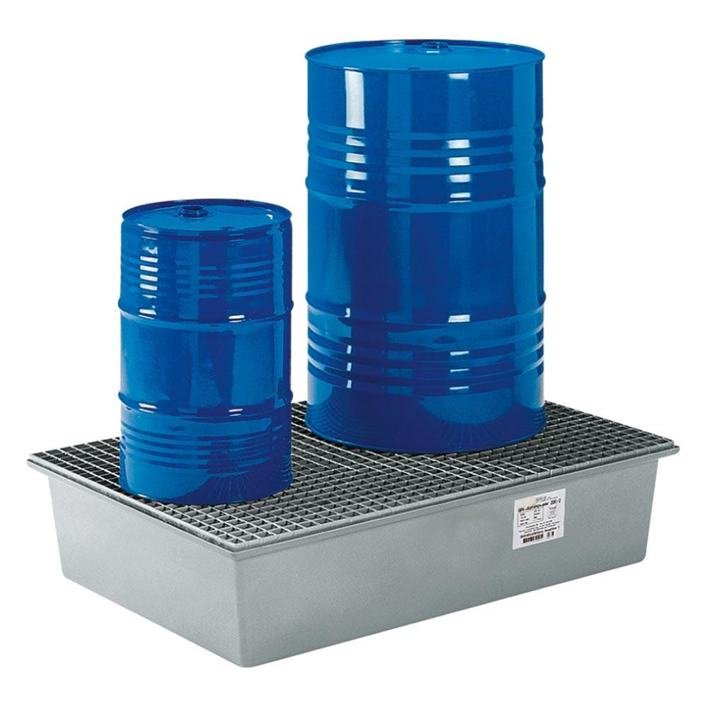 Auffangwanne aus GFK, mit verzinktem Gitterrost, Auffangvolumen 220 l, BxTxH 850x1280x290 mm