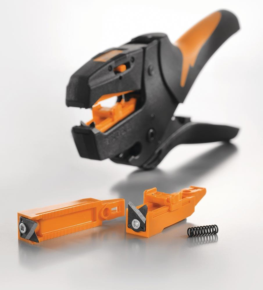zum Abisolieren und Schneiden von feindrähtigen und massiven Leitern mit PVC-Isolation · verarbeiten von Mehrfachleitern · bei dünnen Flachbandleitern sogar mehrere Leiter in einem Arbeitsgang · doppelt isolierte Kabel in 2 Arbeitsgängen ohne besondere Einstellung · automatisches Öffnen der Klemmbacken nach dem Abisoliervorgang · sie verfügen über einen innenliegenden Seitenschneider bis max. 6 mm² · Gehäuse aus glasfaserverstärktem Kunststoff · die Griffschalen sind abnehmbar · Messerkasetten austauschbar
