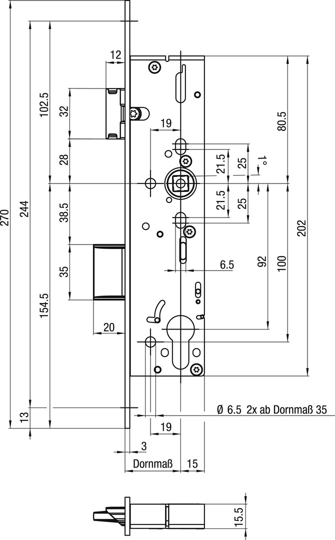 • Einsteckschloss für 1-flügelige Rohrrahmentüren  Umschaltfunktion B nach DIN 18250  Riegelausschluss 20 mm  PZ 1-tourig  Flachstulp Edelstahl  Entfernung 92 mm  Vierkantnuss 9 mm, geteilt  Schlossfunktion 4-in-1  Umlegbare Falle (DIN links/DIN rechts)  Einstellbare Panikseite (einwärts/auswärts)