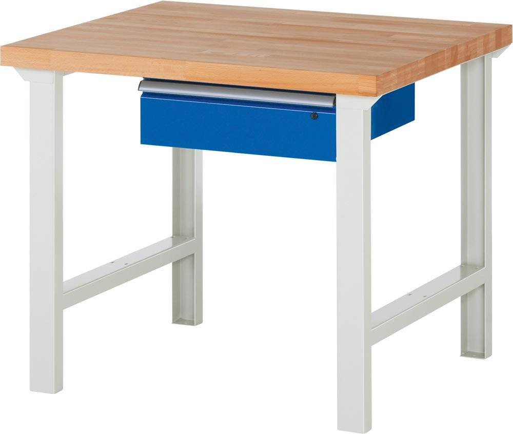 Baukastenwerkbank, Platte Buche 40 mm, 1 Schublade 150 mm, BxTxH 1000x900x840 mm, RAL 7035/5010