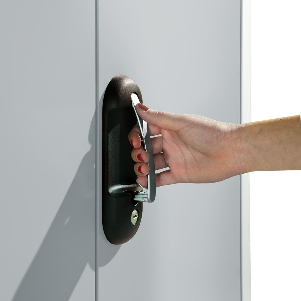· Besonders stabile, verwindungssteife Stahlblechkonstruktion · Oberfläche pulverbeschichtet · Schränke mit gemeinsam verschließbaren Flügeltüren mit Verstärkungstaschen · Die Türen sind über ein dreiriegeliges Griffschloss mit integriertem Zylinderschloss inkl. 2 Schlüsseln verschließbar · Gehäuse-Belastbarkeit 700 kg · Ausgestattet mit Fachböden im Raster von 15 mm verstellbar, Traglast je Fachboden 110 kg bei gleichmäßig verteilter Last