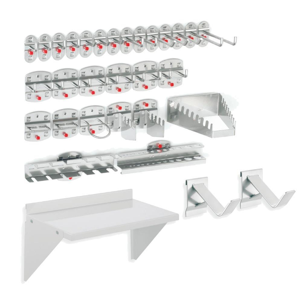 Bestückungssortiment für Systemeinheit Hakensortiment 28-tlg., Fachboden, Dornträger, div. Kästen
