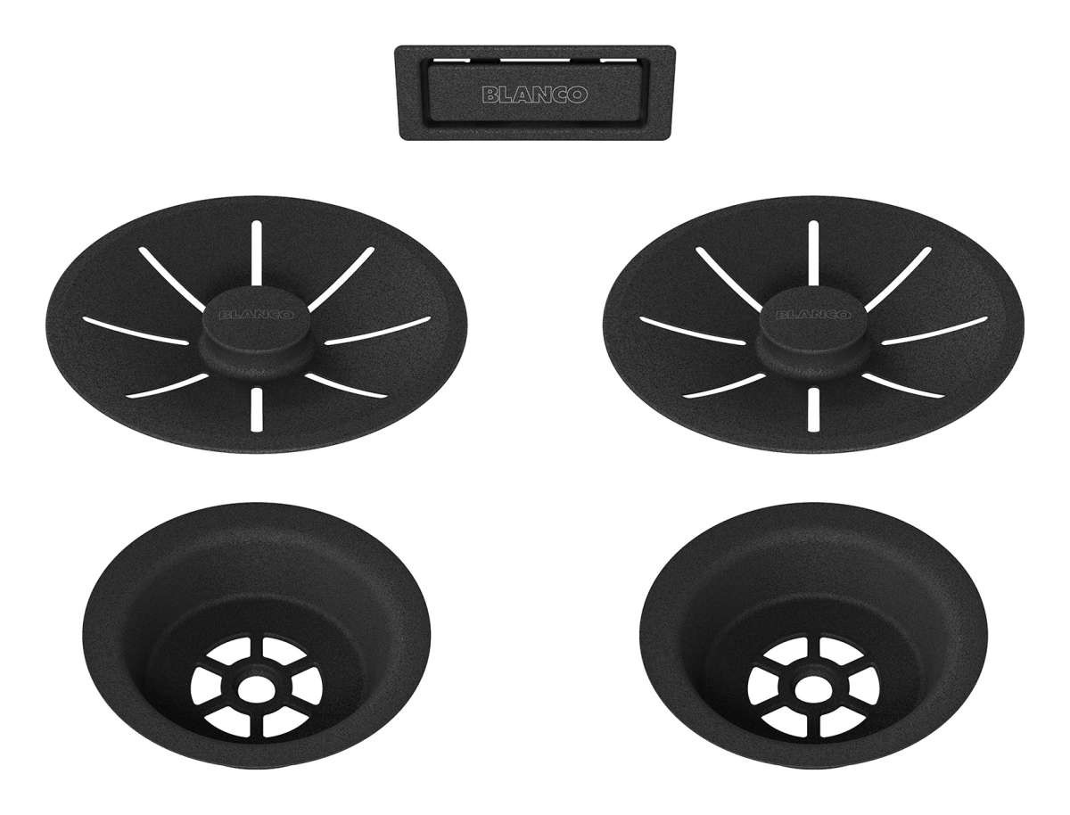 Blanco Ab- und Überlaufset, schwarz, für Doppelbecken