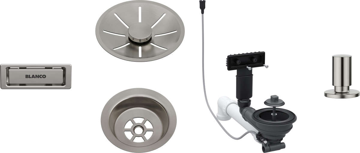 Blanco Ablaufgarnitur Set 1x3,5'' mit Ablauffernbedienung InFino für Einzelbecken, satin platinum