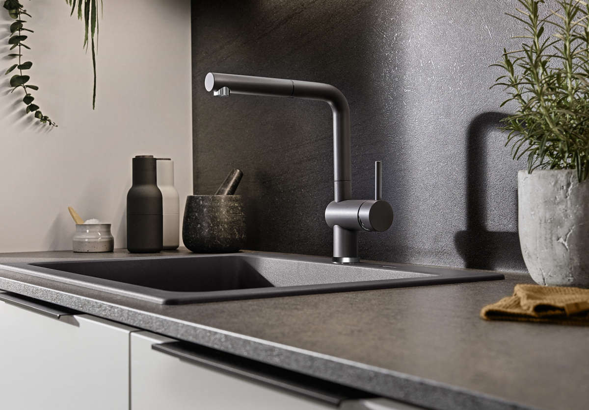 - Color-Ausführung in perfekter Abstimmung zu farbigen Spülen und Becken aus SILGRANIT