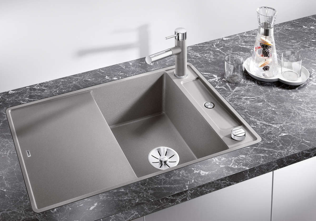 Blanco Einbauspüle AXIA III 45 S-F, reversibel, mit Holzschneidbrett, SILGRANIT, anthrazit, für flächenbündigen Einbau und Unterbau