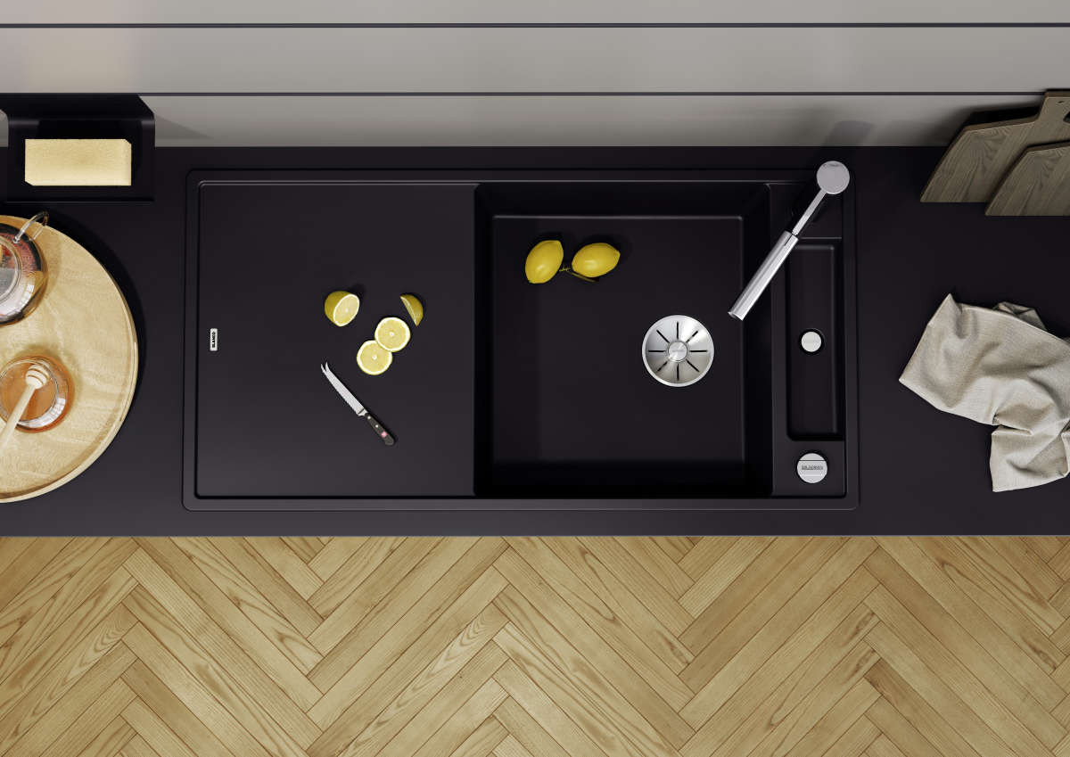 - Geräumiges Becken und formschön integrierte, praktische Abtropfmulde