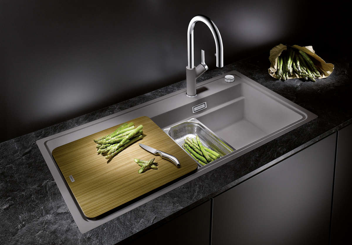 Blanco Einbauspüle ZENAR XL 6 S-F DampfgarPlus, Becken rechts, mit Holzschneidbrett, SILGRANIT, anthrazit, für flächenbündigen Einbau und Unterbau