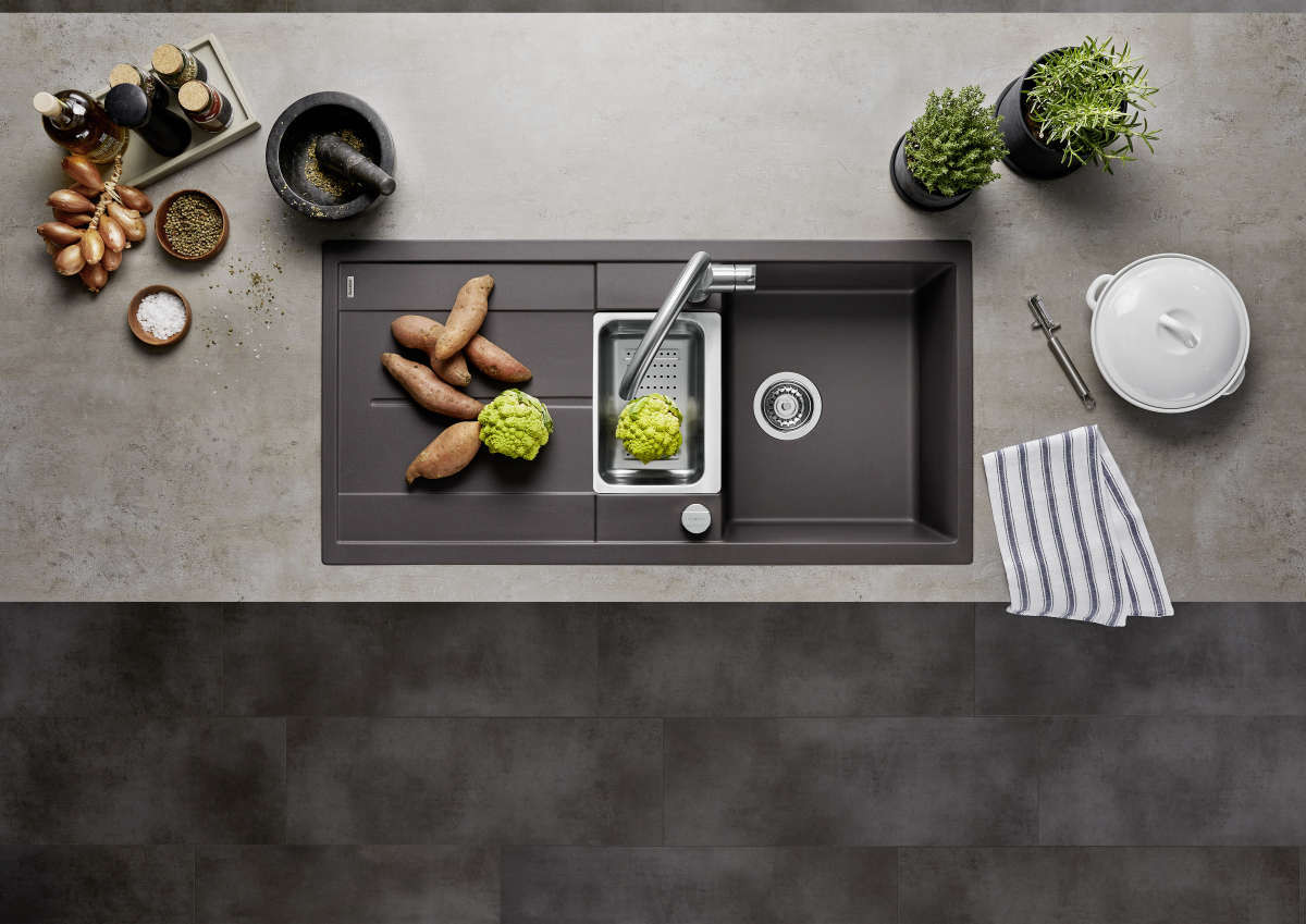 - Zusatzbecken mit großer Abtropffläche sorgt für hohen Komfort beim Arbeiten