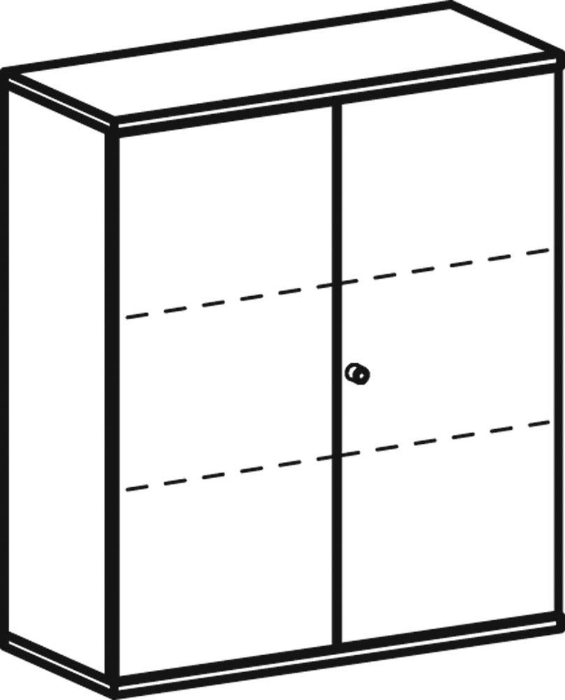 Büro-Flügeltürenschrank, BxTxH 1000x425x1152 mm, 3 OH, 2 Böden, Schloss, buche