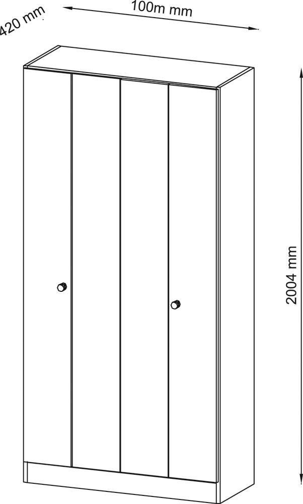 ∙ Beidseitig melaminharzbeschichtete Oberflächen, blend- und reflexfrei, abriebfest und pflegeleicht ∙ Von oben verstellbare Sockelfüße zum Ausgleich von Bodenunebenheiten ∙ Hochwertige Metallbeschläge für höchste Beanspruchung · Geteilte Falttüren, daher geringer Platzbedarf · Streifengriff