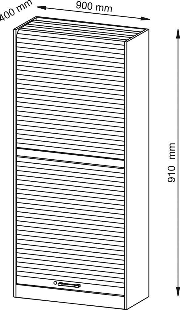 ∙ Die optimale Schranklösung bei beengten Raumverhältnissen · Vielfältige Unterbringungsmöglichkeiten ohne störende, in den Raum ragende Türen ∙ Korpus mit beidseitig melaminharzbeschichteten Oberflächen, blend- und reflexfrei, pflegeleicht und abriebfest ∙ Rollladenfront aus leichtlaufenden, PVC-freien Kunststofflamellen mit einem Gewichtsausgleich, der den Rollladen beim Öffnen und Schließen in jeder Position hält ∙ Querrollladenschrank einseitig nach links öffnend, Hochrollladenschränke nach oben öffnend ∙ Abschließbar mit Sicherheits-Zylinderschloss inkl. 2 Schlüsseln