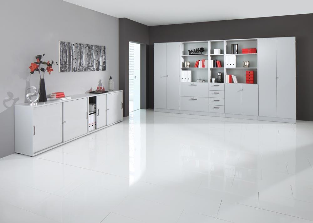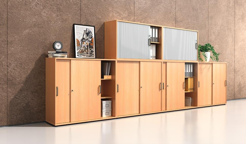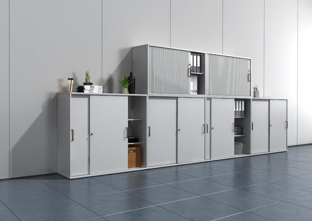 Büro-Schiebetürenschrank, BxTxH 1200x400x748 mm, 2 OH, 1 Boden, Schloss, lichtgrau