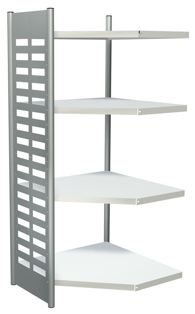 Büroregal, Eckfeld, BxTxH 400x500x1800 mm, 4 Böden, alusilber/lichtgrau, OHNE Abschlussrahmen