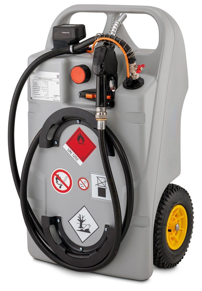 Dieseltrolley, Vol. 100 l, Elektropumpe 18 V, 25 l/min, CAS Akku 18 V, 4 Ah und Ladegerät ASC55, BxTxH 590x430x1000 mm