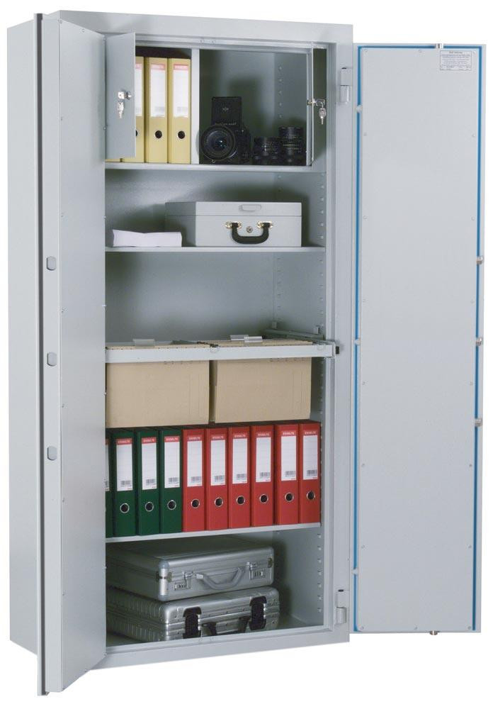 Dokumentenschrank, Sicherheitsstufe B + S2, LFS30P, BxTxH 955x527x1875 mm, Volumen 490 l, 4 Böden, RAL 7035 lichtgrau
