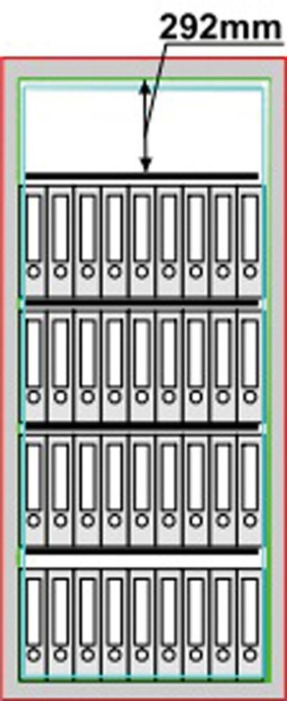 Dokumentenschrank, Sicherheitsstufe Kl. II, LFS30P, BxTxH 806x550x1806 mm, Volumen 447 l, 4 Böden, Kapazität 36 Ordner, RAL 7035 lichtgrau