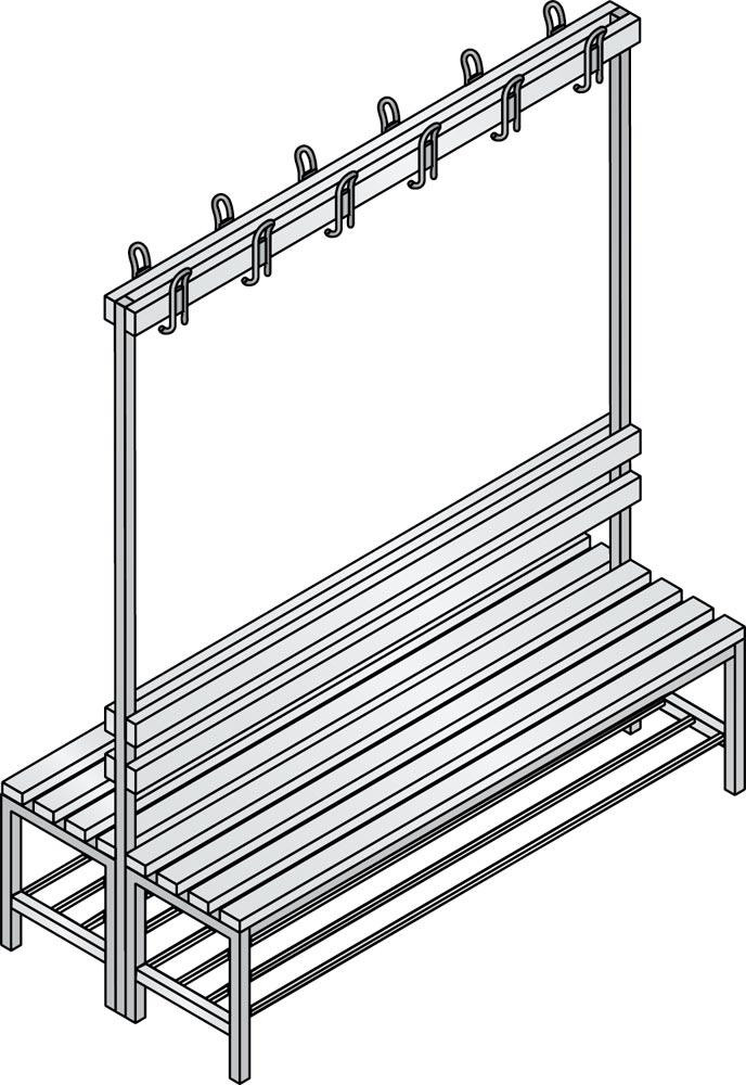 Doppelseitige Garderobenbank, Hartholzleisten, mit Schuhrost, TxH 756x1710 mm, Länge 1000 mm, RAL 7021