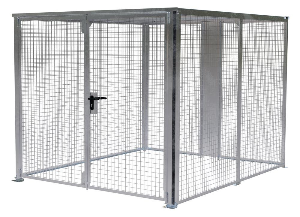· Zur Aufbewahrung von Gütern unter Verschluss · Stabile Rahmenkonstruktion · Wände, Türen und Dach aus feuerverzinktem Drahtgitter 50 x 50 x 4,8 mm · Abschließbares Doppelflügeltor mit Drücker und Zylinderschloss, B x H 2160 x 1985 mm · Vorbereitet für Bodenbefestigung · Baukastensystem mit Aufbauanleitung zur Selbstmontage