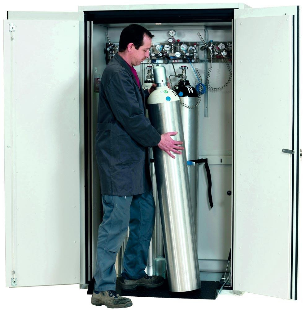Druckgasflaschenschrank, 30 Min. feuerwiderstandsfähig, für 4x50-l-Flaschen, BxTxH 1200x615x2050 mm, RAL 7035