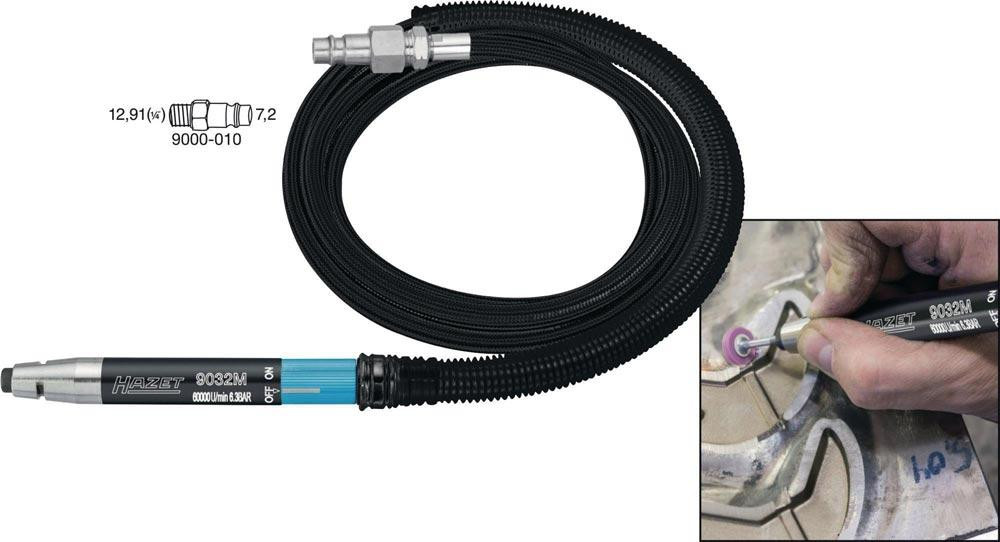 zur präzisen Bearbeitung von Werkstücken auch unter extrem beengten Platzverhältnissen · Schlauchlänge 1500 mm · Drehventil