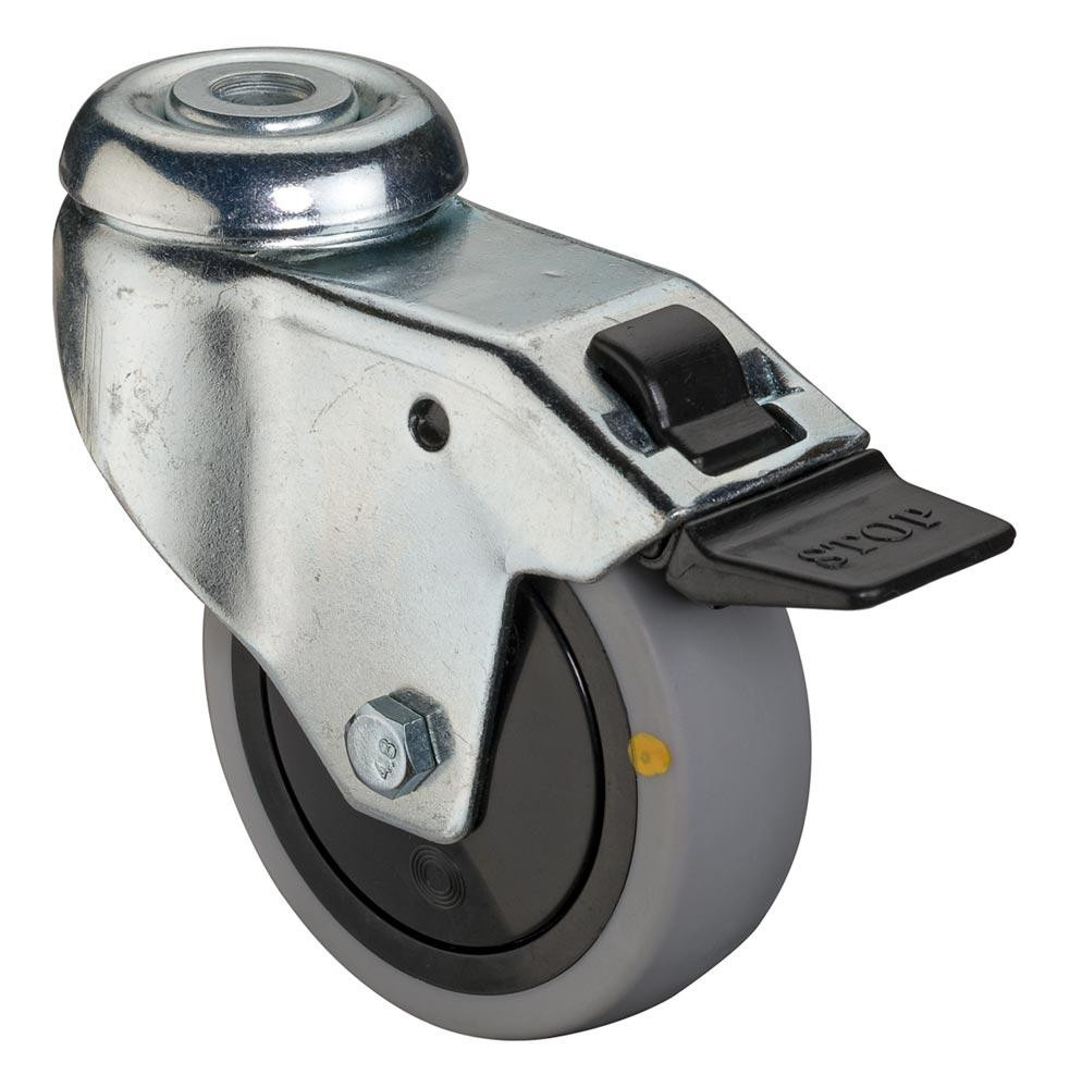 ESD-Apparaterolle, Lenkrolle m. Festst., Gummi thermoplastisch grau, Durchm. 80 mm, Traglast 80 kg, Kugellager, Rückenloch