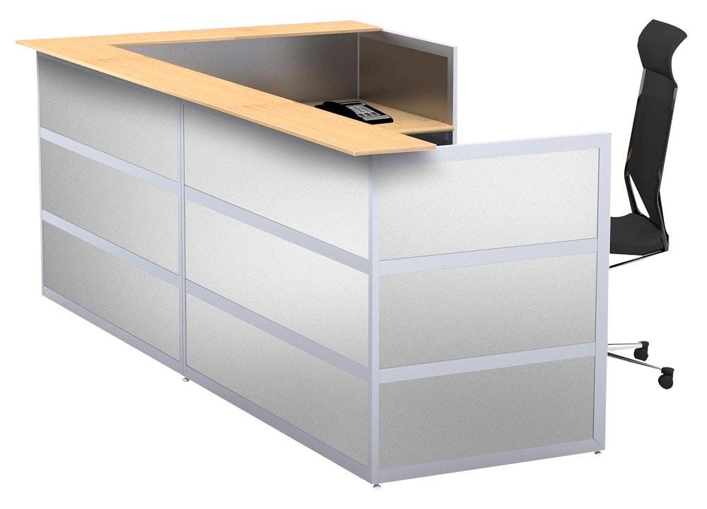 Ecktheke + Anbau, MDF-Dekor silber, Platten buche, BxTxH 2970x 1500x1100mm