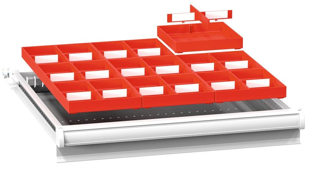 Einteilungsmaterial-Set, 9 Boxen 153x153x25 mm, 9 große Trenneinsätze, 18 kleine Trenneinsätze, für FH 75 mm, passend für Gehäusegröße BxT 578x600 mm